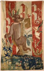 Guillaume Jouvenel ajoute à ses autres emblèmes, l'ourse colletée et la branche ursine, cette lettre J qui renvoie très certainement à son patronyme Jouvenel. Elle est figurée sur de très nombreux supports : manuscrits, tapisseries. Sur une miniature du Mare Historiarum de Giuovanni Colonna, le chancelier visite l'atelier de son copiste qui porte une jacques à la manche gauche chargée de trois J, sans doute la livrée de l'hôtel de Guillaume Jouvenel.