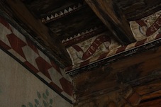 La devise de Valeran de Saluces, le mot LEIT et la couronne de houx, dans le décor de son château de la Manta