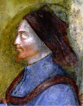 Francesco I da Carrara vêtu d’une livrée à sa devise de la comète et de la sphère sur une fresque de l’oratoire San Michele de Padoue par Jacopo da Verona