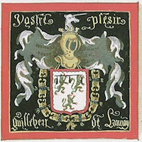 Ce mot est régulièrement cité dans les documents relatifs à Gilbert de Lannoy tel son livre d’Heures (infra détail) ou certains panneaux des chapitres de la Toison d’Or[1]. A la mode du temps, Gilbert de Lannoy l’introduit parfois dans ses œuvres poétiques à l’instar de cette ballade : « Vostre plaisir a mon leal pouoir ». Ce mot doit peut-être être relié à la devise des entraves de prisonnier ouvertes, par allusion à une captivité réelle (il est otage en 1416), spirituelle ou courtoise dont Ghillebert de Lannoy aurait été libéré après un vœu.
